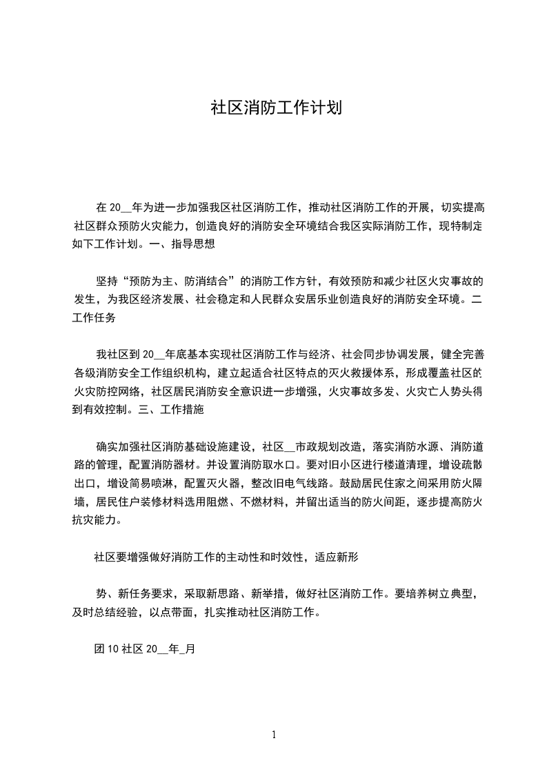 在20__年为进一步加强我区社区消防工作,推动社区消防工作的开展,切实提高社区群众预防火灾能力,创造良好的消防安全环境结合我区实际消防工作,现特制定如下工作计划。一、指导思想