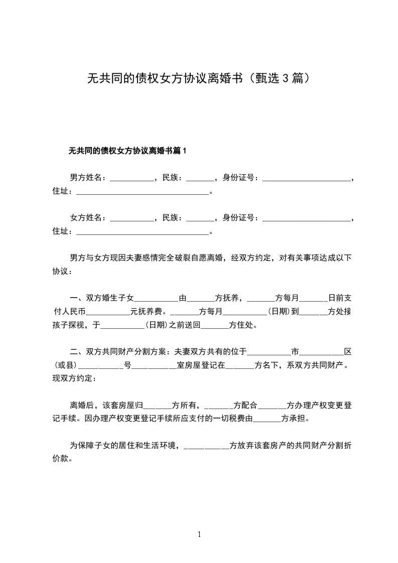 七、本协议一式三份,当事人双方各执一份,交婚姻登记机关存档备案一份。