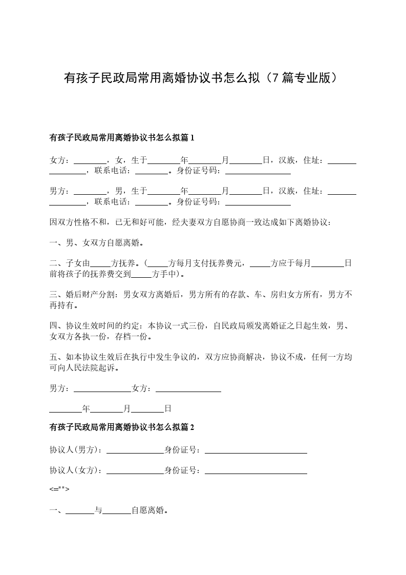 九、本协议书一式三份,甲乙双方各执一份,婚姻登记部门保留一份。在双方签字,并经婚姻登记机关办理相应手续后生效。