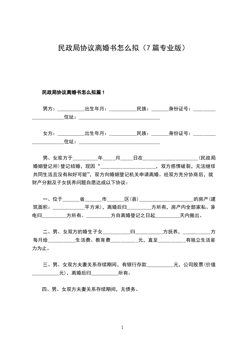 男、女双方于__________年_____月_____日在______________________(民政局婚姻登记所)登记结婚,现因“______________________,双方感情破裂,无法继续共同生活且没有和好可能”,双方向婚姻登记机关申请离婚。经双方充分协商后,就财产分割及子女抚养问题自愿达成以下协议: