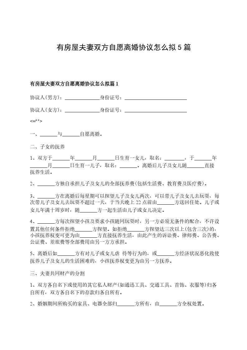 有房屋夫妻双方自愿离婚协议怎么拟篇5