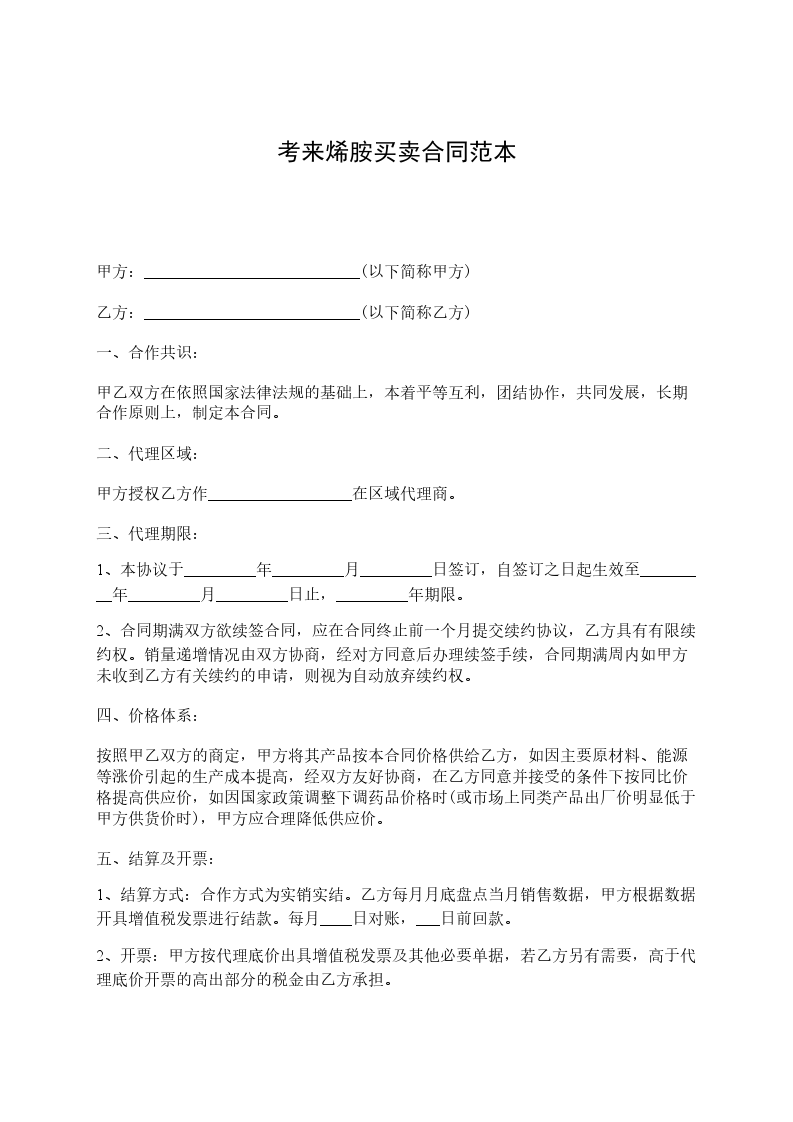 3)甲方同意为乙方开具供货产品在约定区域的代理销售委托书及开展业务所需的其他相关资料。