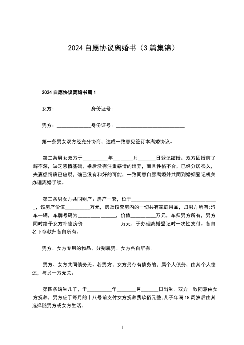 本协议书系双方真实意思表示,上述内容全部真实有效,一旦提供虚假情况,双方当事人自愿承担一切法律后果。本协议书一式____份,婚姻登记机关存档____份,双方各执____份,双方签字,并经婚姻登记机关办理离婚登记后生效。