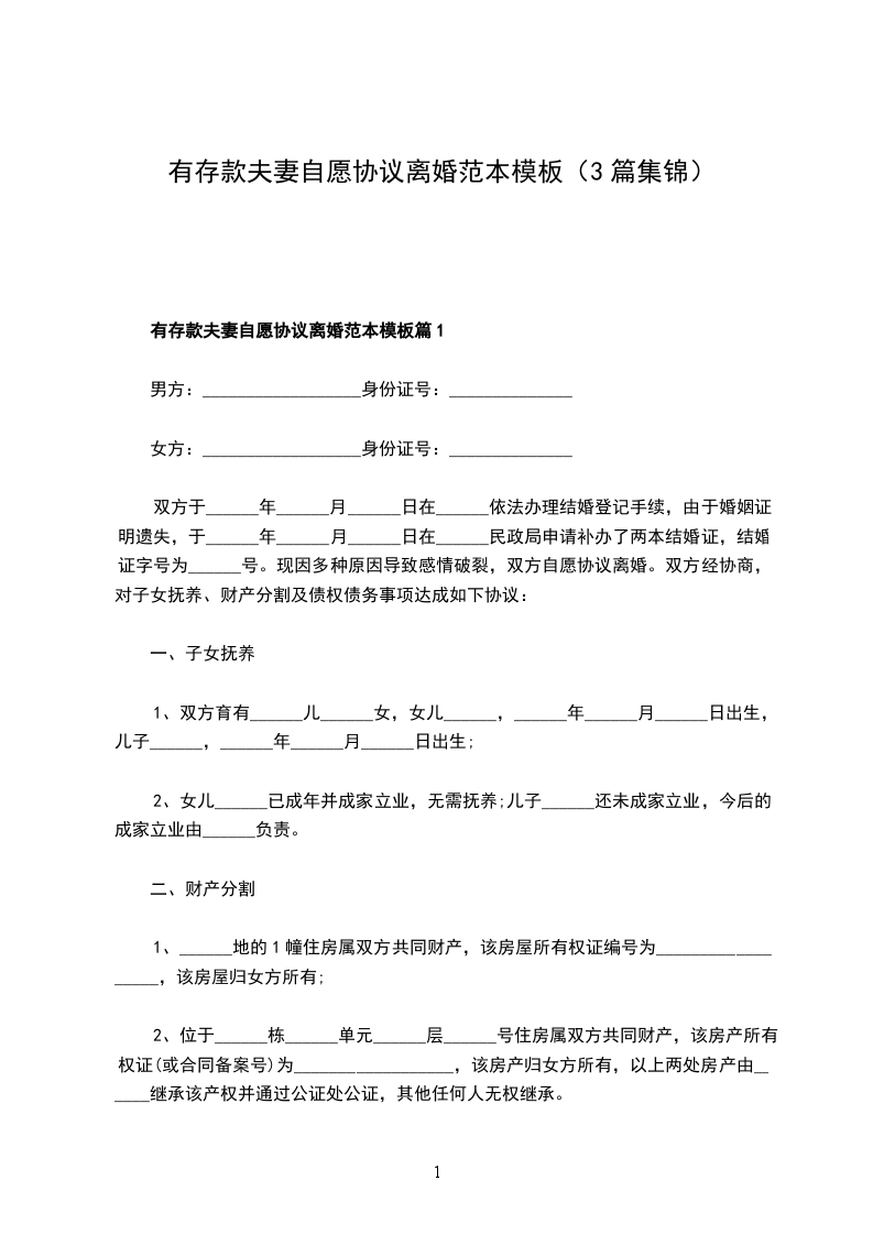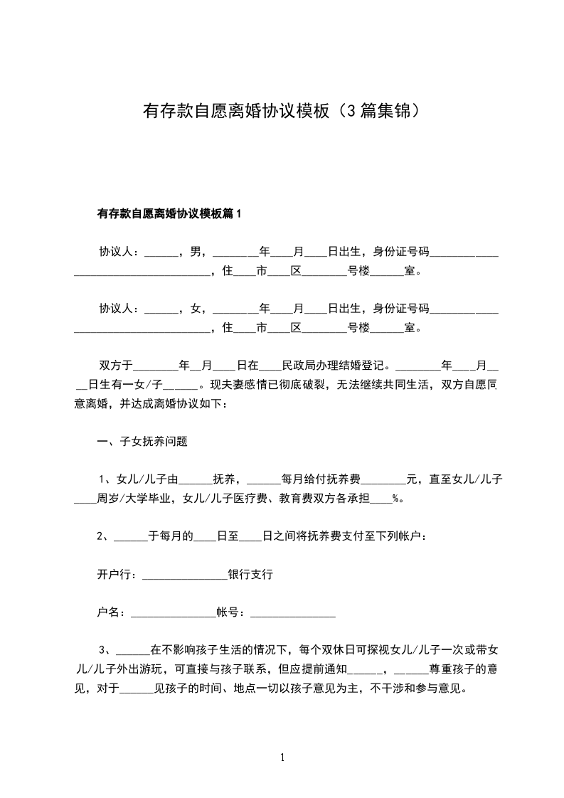 有存款自愿离婚协议模板篇3