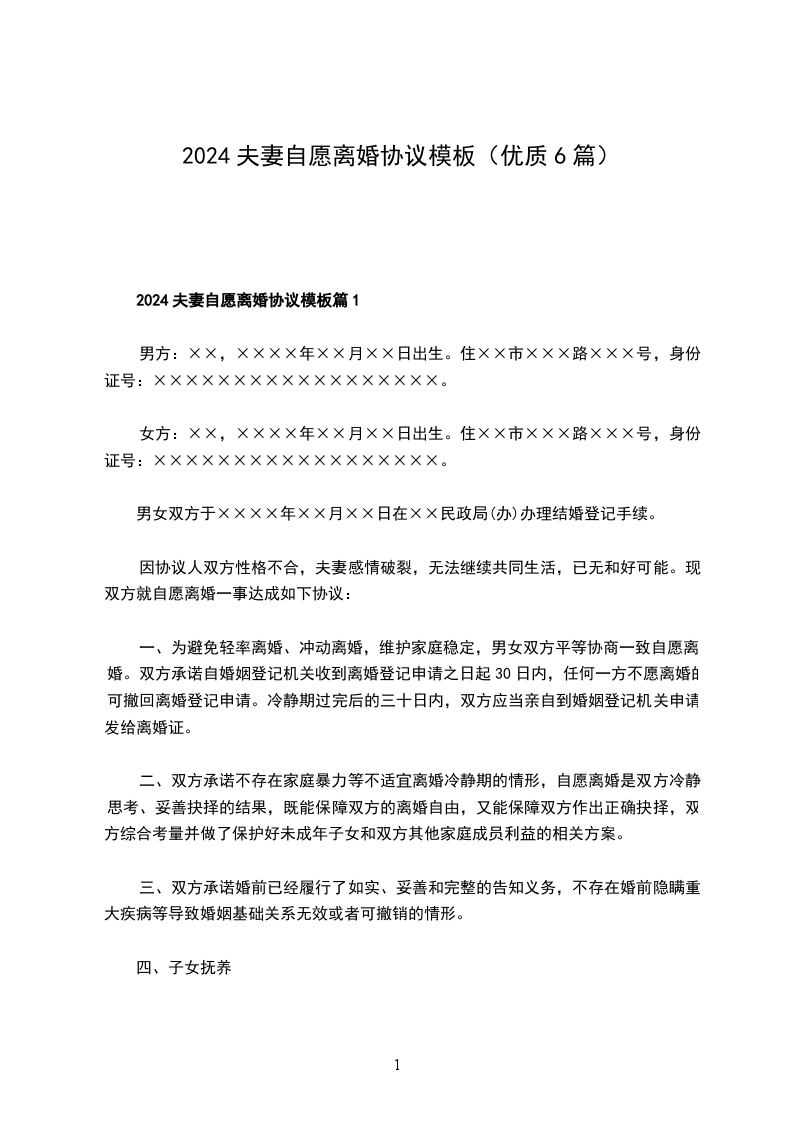 2024年夫妻自愿离婚协议书篇1