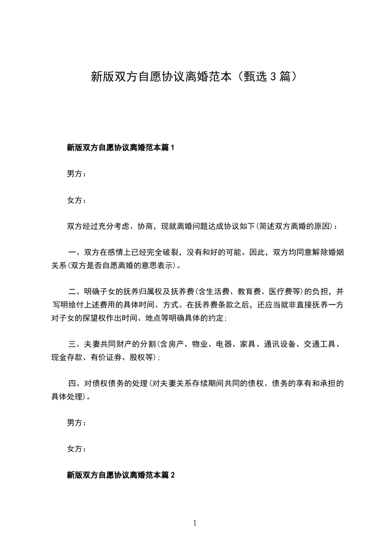 一、男女双方自愿离婚