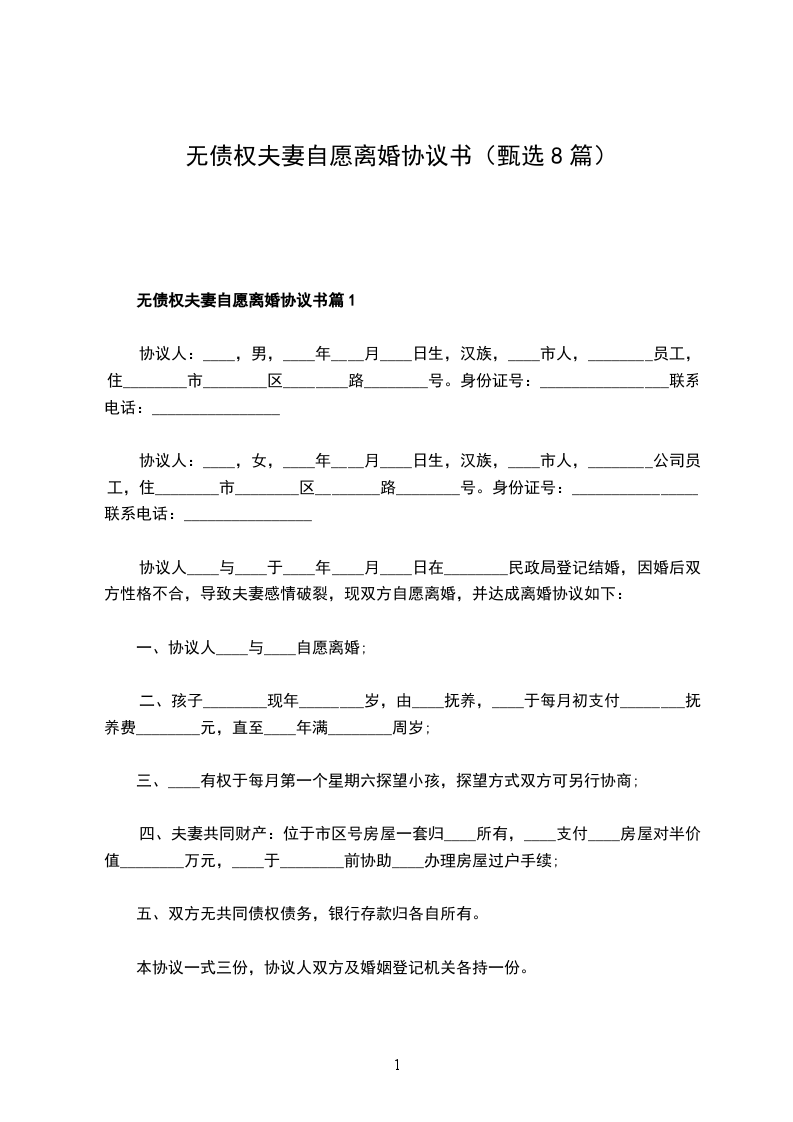 第八条本协议一式三份,双方各执一份,一份给婚姻登记机关;自离婚登记之日起生效。
