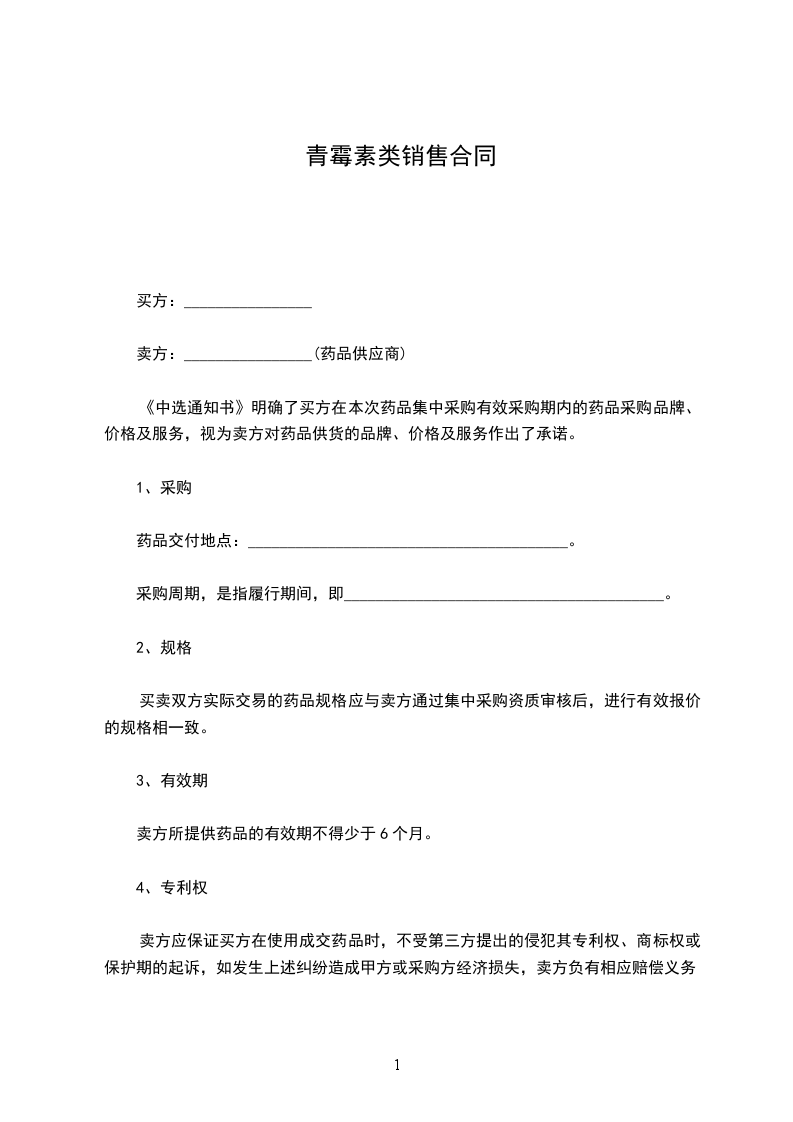 15.1买方须采购本合同项下的中选品种且完成约定的采购量。卖方无违约行为,买方不得以任何理由采购非中选品种,不得采购其他替代品种。