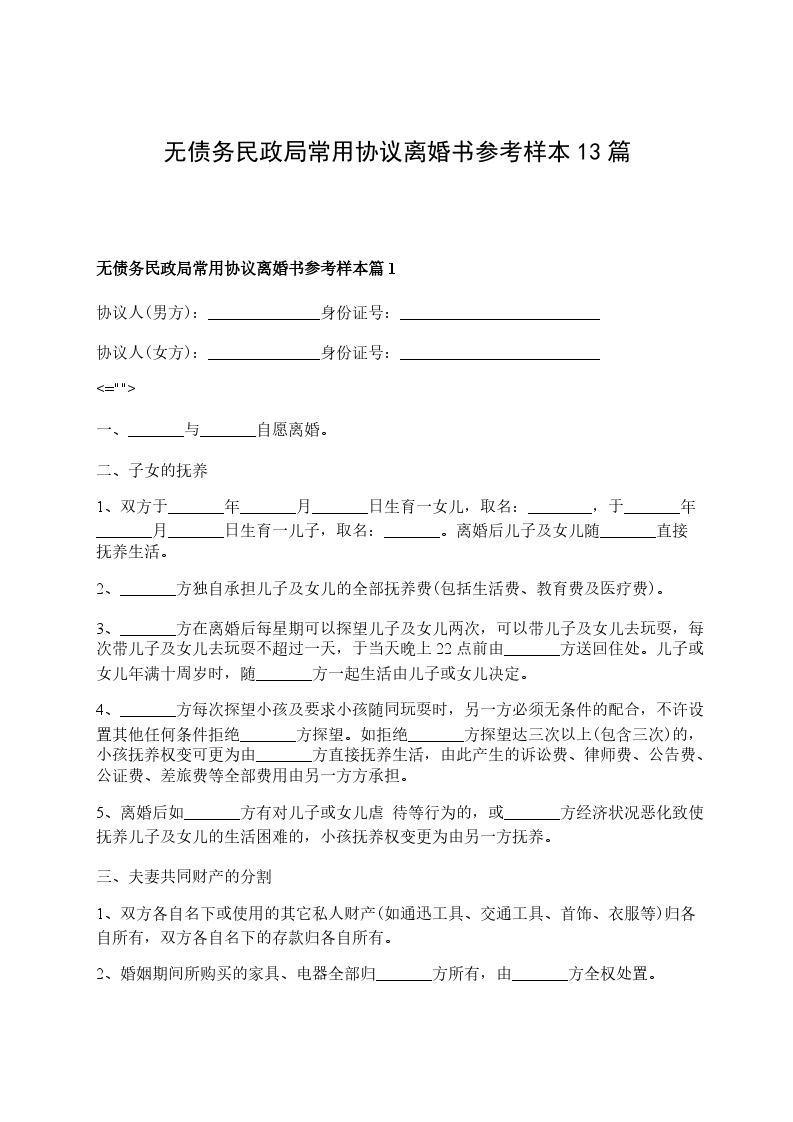 本协议书系双方真实意思表示,上述内容全部真实有效,一旦提供虚假情况,双方当事人自愿承担一切法律后果。本协议书一式____份,婚姻登记机关存档____份,双方各执____份,双方签字,并经婚姻登记机关办理离婚登记后生效。