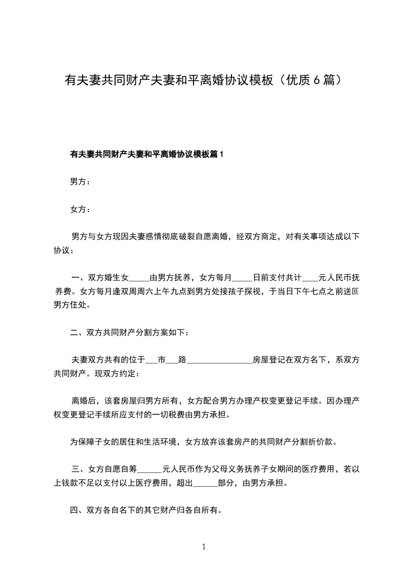 协议人双方于_______年_______月_______日登记结婚,_______年_______月_______日生育一子,取名_______。现协议双方夫妻感情确已完全破裂,经双方协商一致,自愿离婚、财产分割及子女抚养事宜达成如下协议: