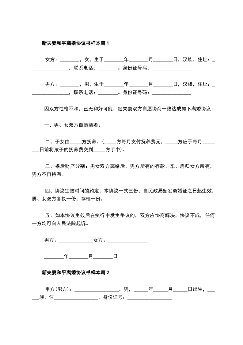 本协议一式三份,一份二张,男、女双方各执一份,婚姻登记机关存档一份,自婚姻登记机颁发《离婚证》之日起生效。