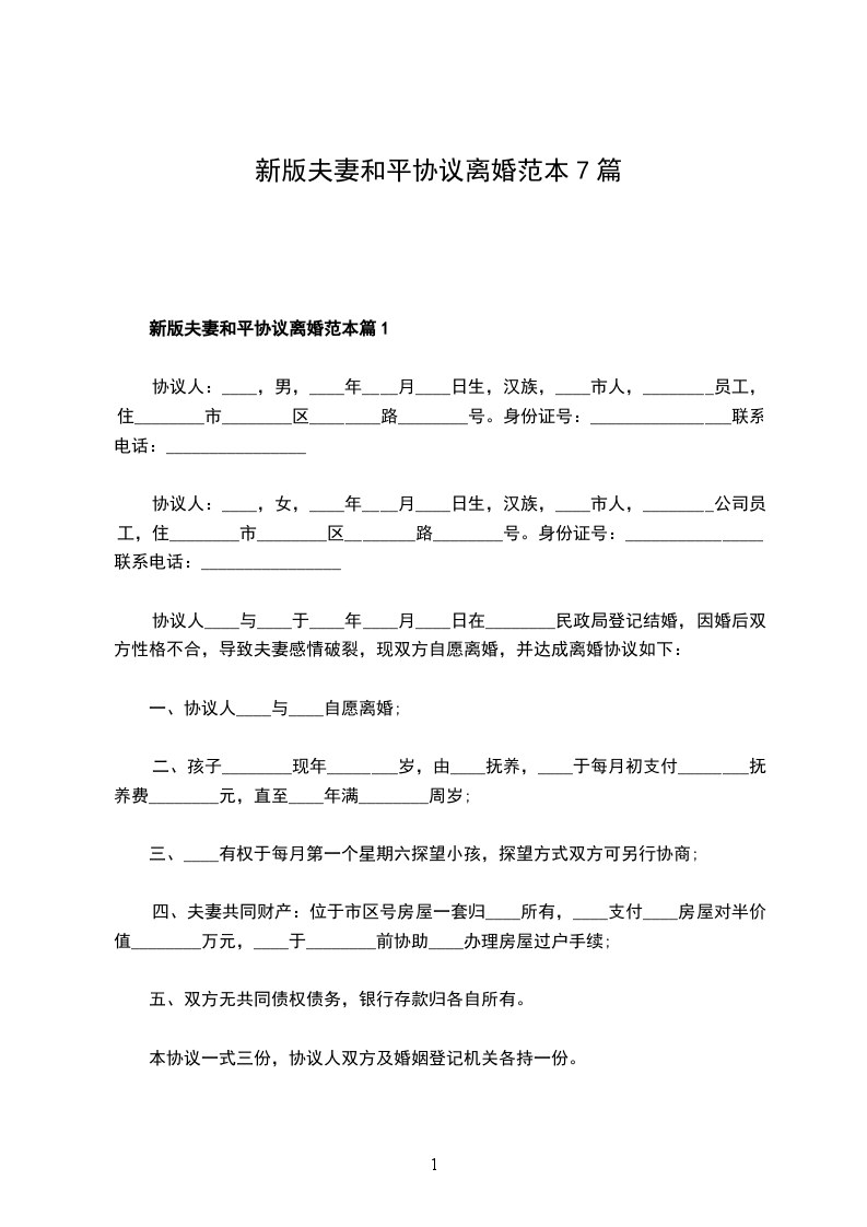 七、本协议一式_____份,男女双方各执_____份,自婚姻登记机关颁发《离婚证》之日生效。
