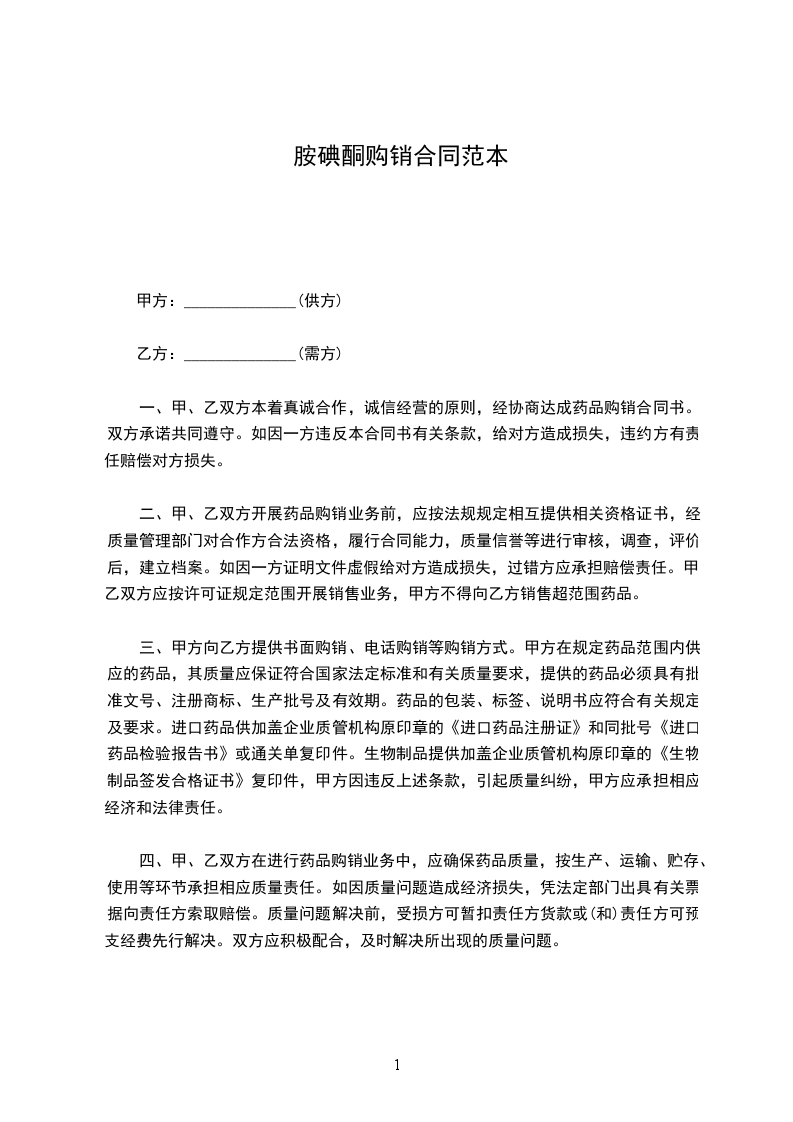 为了依法保护医疗机构(甲方)和药品生产、经营企业和配送企业(乙方)的合法利益,规范购销双方行为,遏制医药购销领域的不正之风,根据国家有关法律和____________省药品集中上网采购有关规定,经双方自愿协商,制定合同如下,以资双方共同遵守。