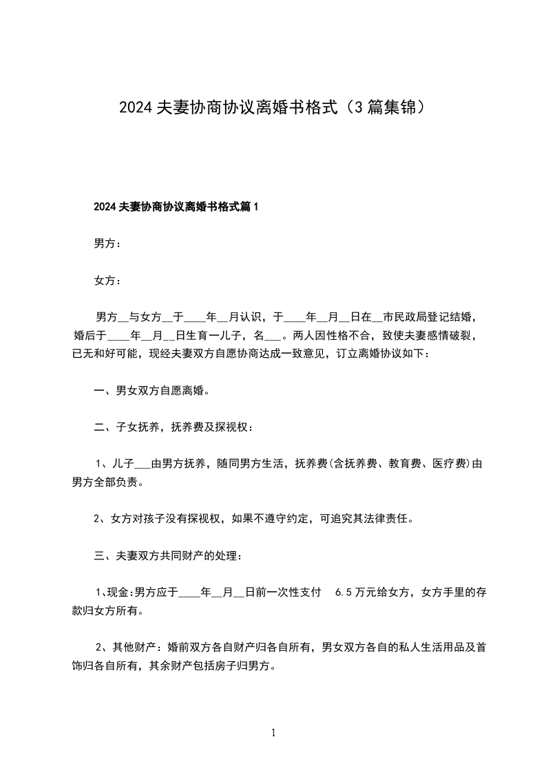 本协议一式三份,男女双方各执一份。婚姻登记机关存档一份。