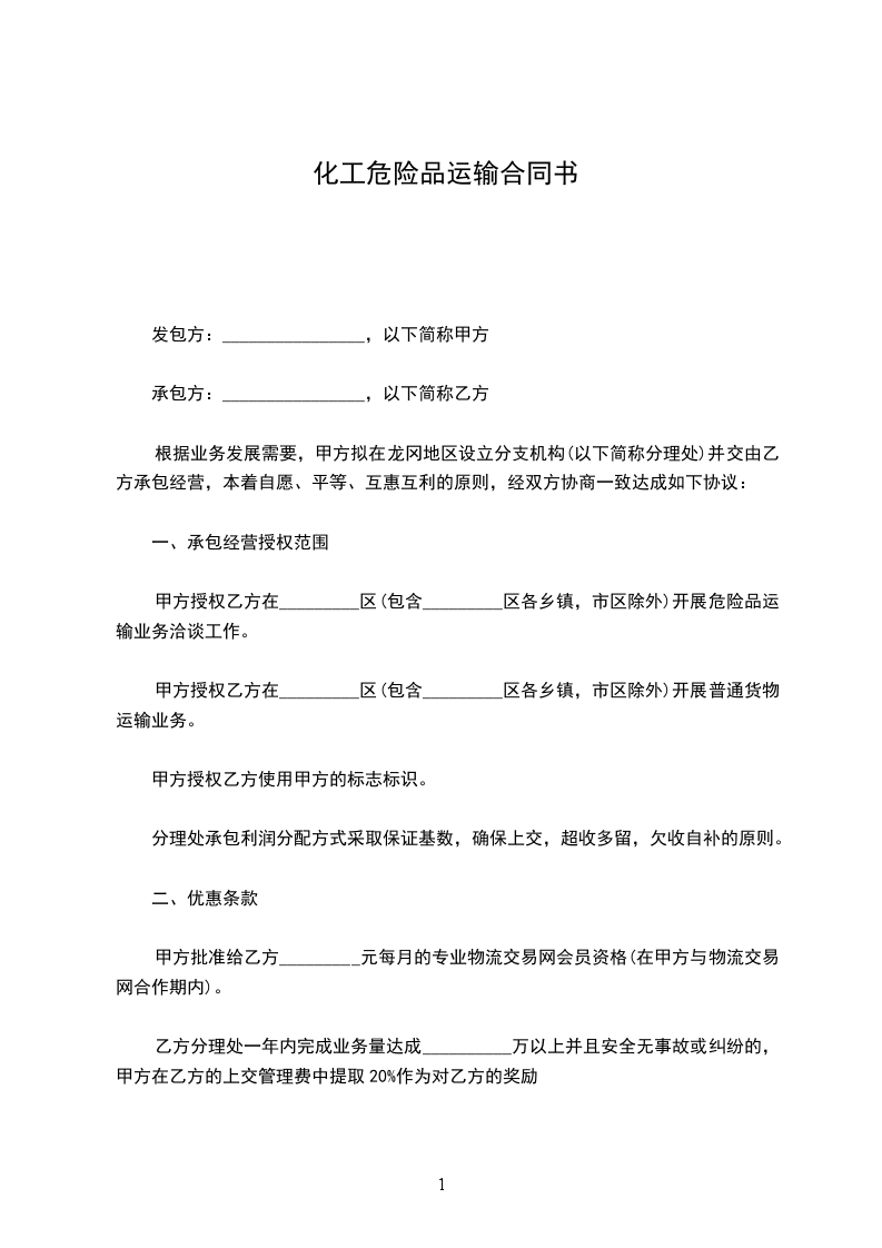 甲方授权乙方在_________区(包含_________区各乡镇,市区除外)开展危险品运输业务洽谈工作。