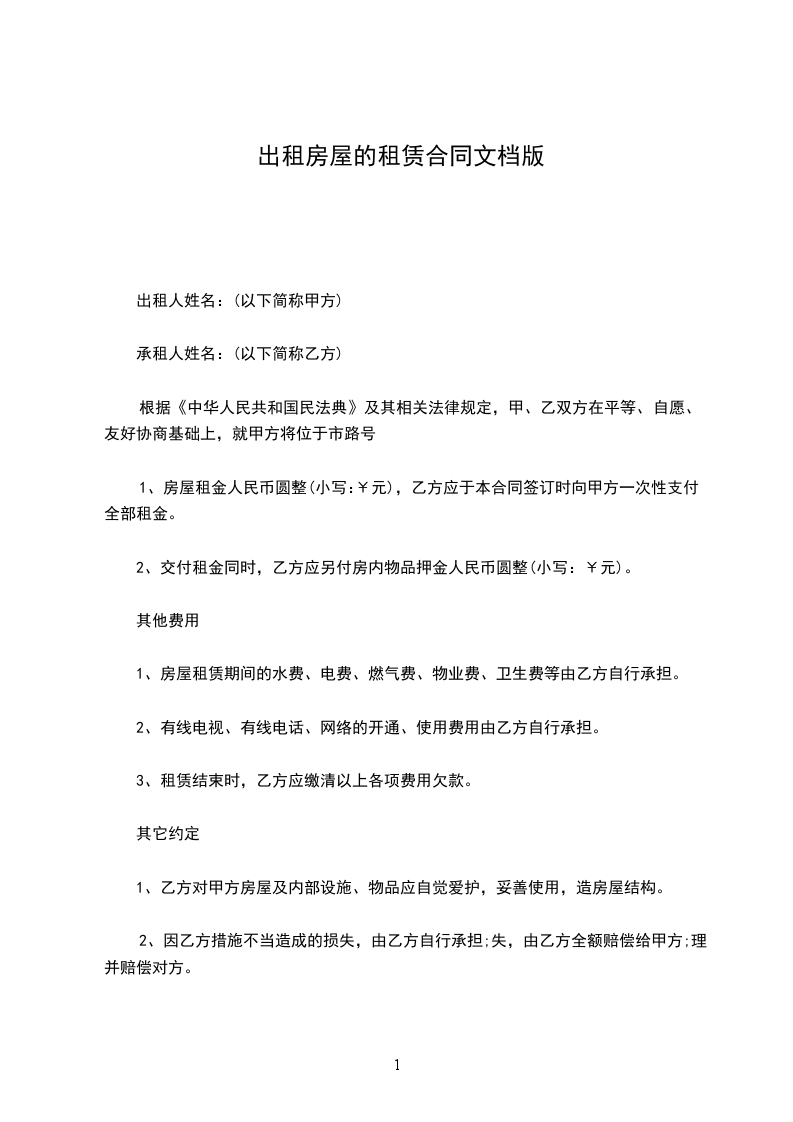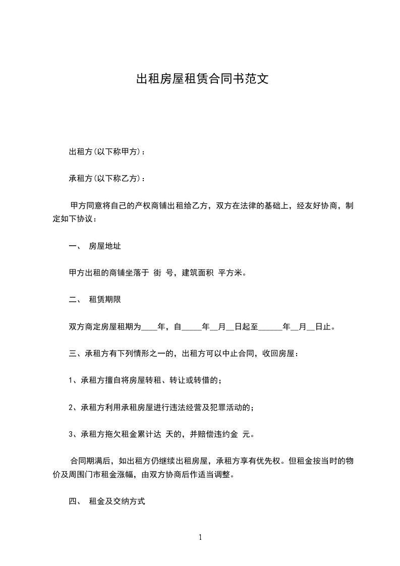 1、若出租方在承租方没有违反本合同的情况下提前解除合同或租给他人,视为甲方违约,负责赔偿违约金 元。