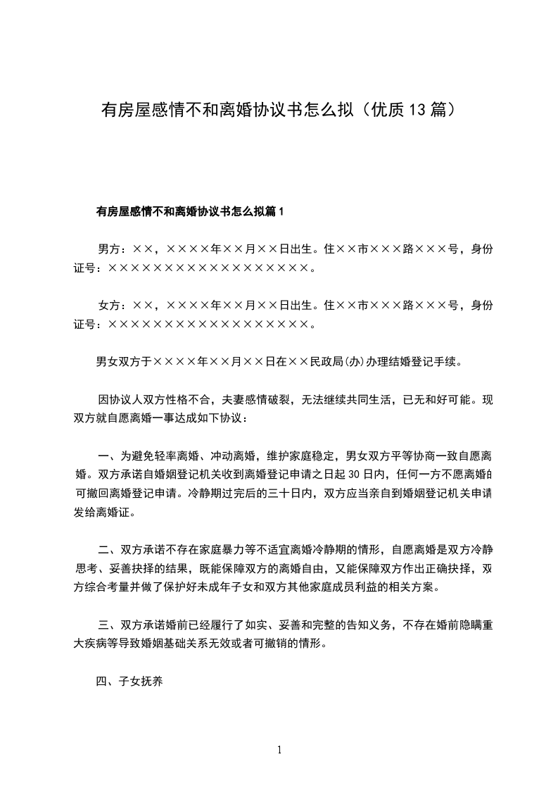 有房屋感情不和离婚协议书怎么拟篇13