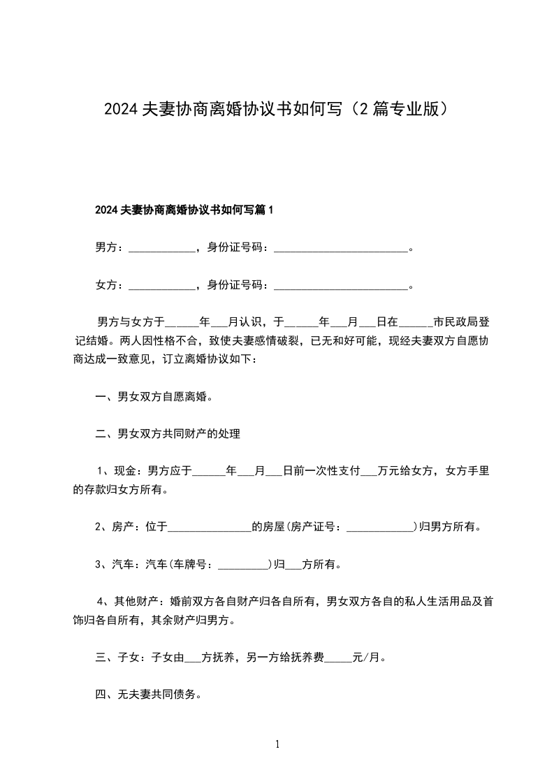2024夫妻协商离婚协议书如何写篇1