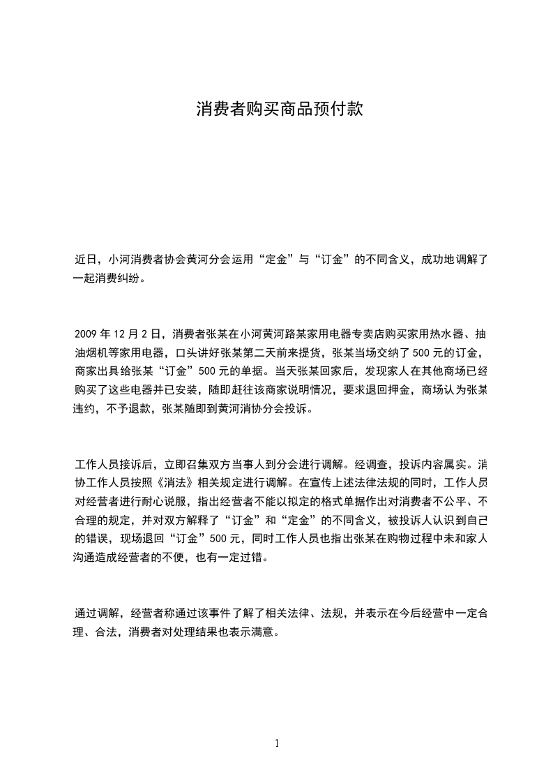 近日,小河消费者协会黄河分会运用“定金”与“订金”的不同含义,成功地调解了一起消费纠纷。