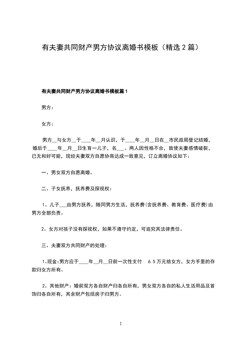 1、儿子___由男方抚养,随同男方生活,抚养费(含抚养费、教育费、医疗费)由男方全部负责。