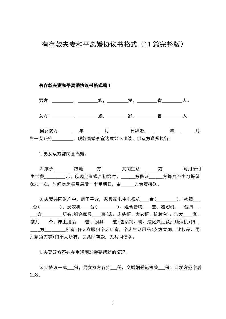 有存款夫妻和平离婚协议书格式篇11