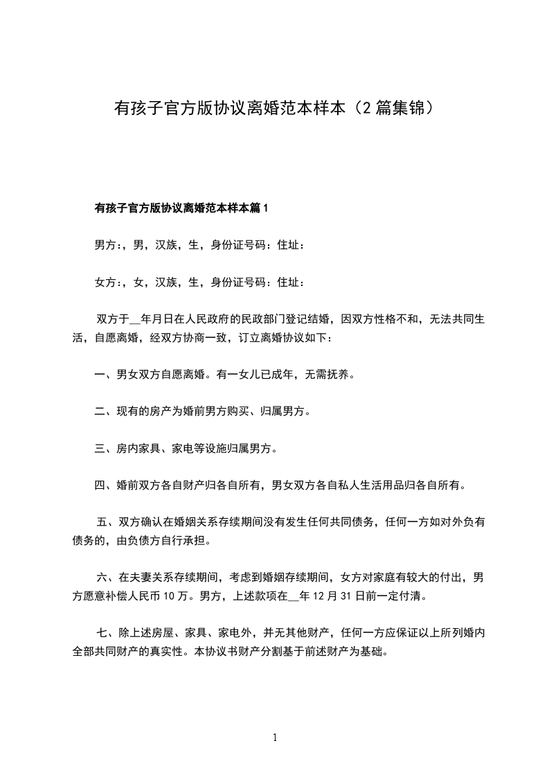 本协议一式______份,双方各执一份,婚姻登记机关存档一份,在双方签字,并经婚姻登记机关办理相应手续后生效。