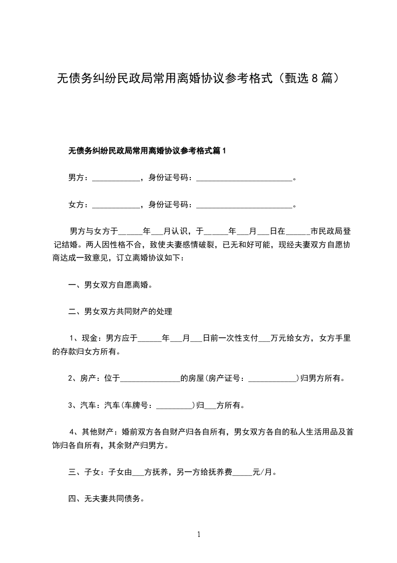 无债务纠纷民政局离婚协议样本篇8