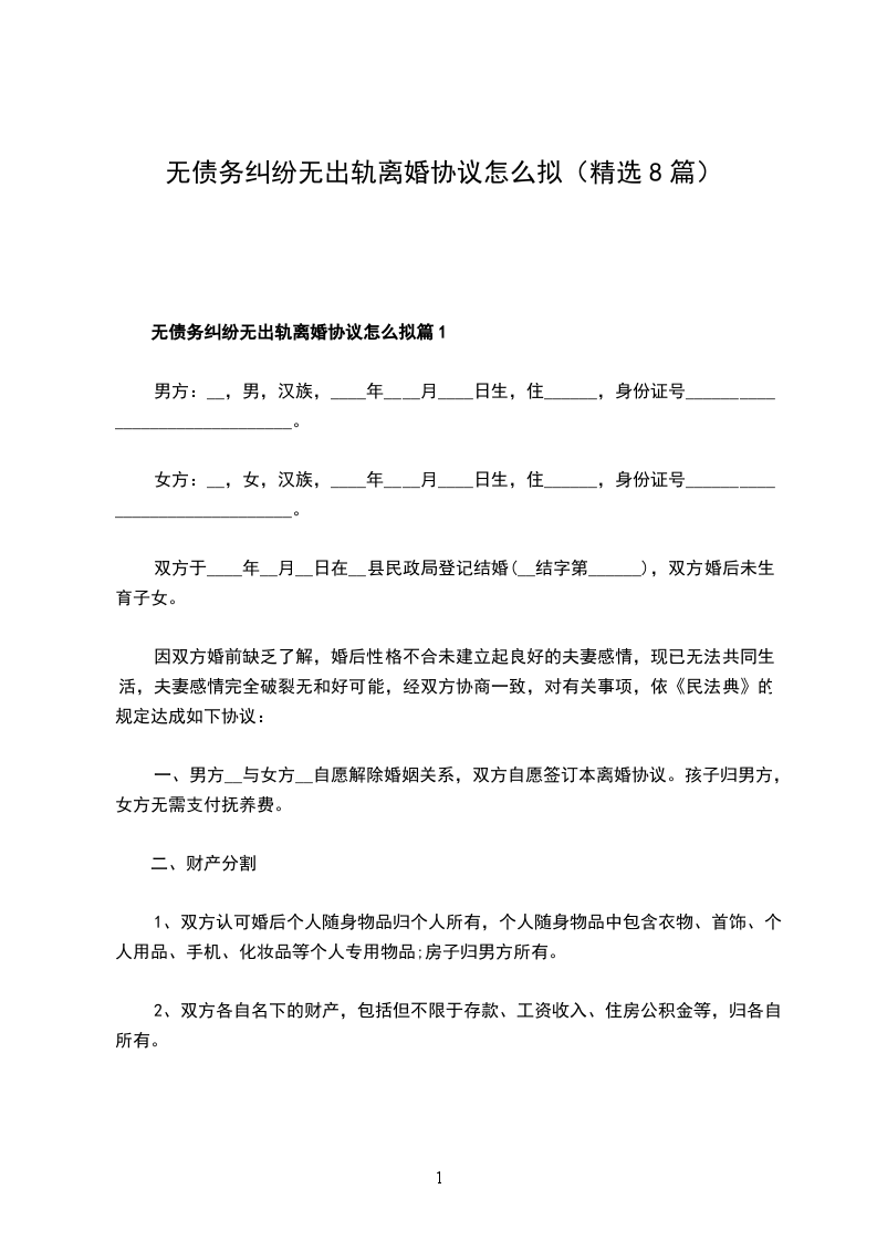 无债务纠纷无出轨离婚协议怎么拟篇8