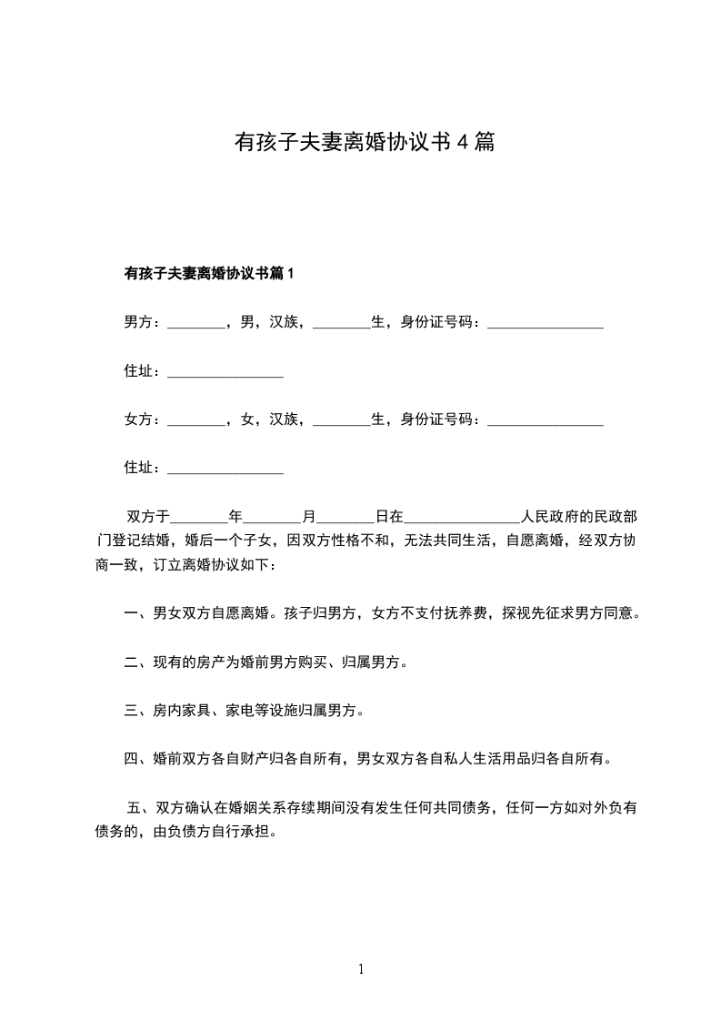 有孩子夫妻协议离婚书篇4