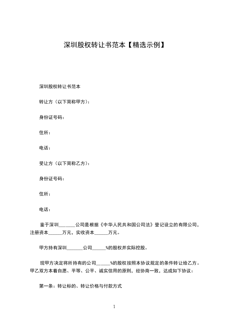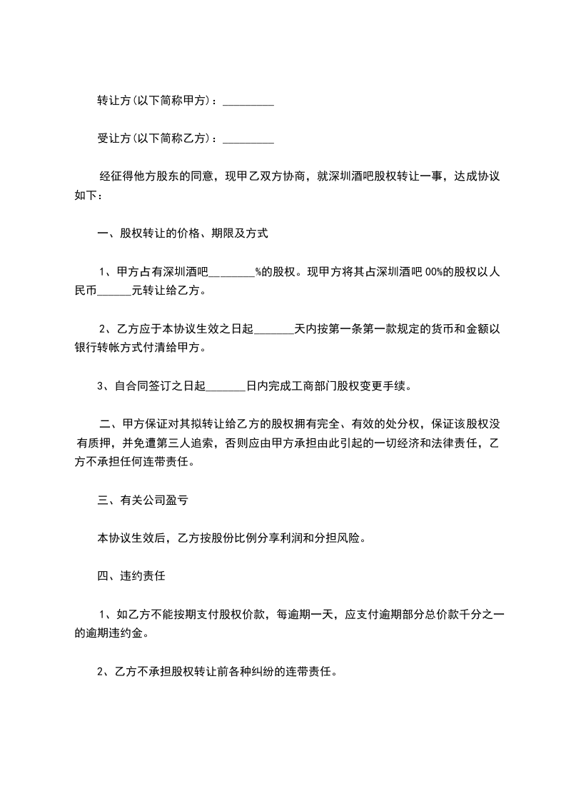 5. 合同标的:指出让方所持有的 公司的___%股权。