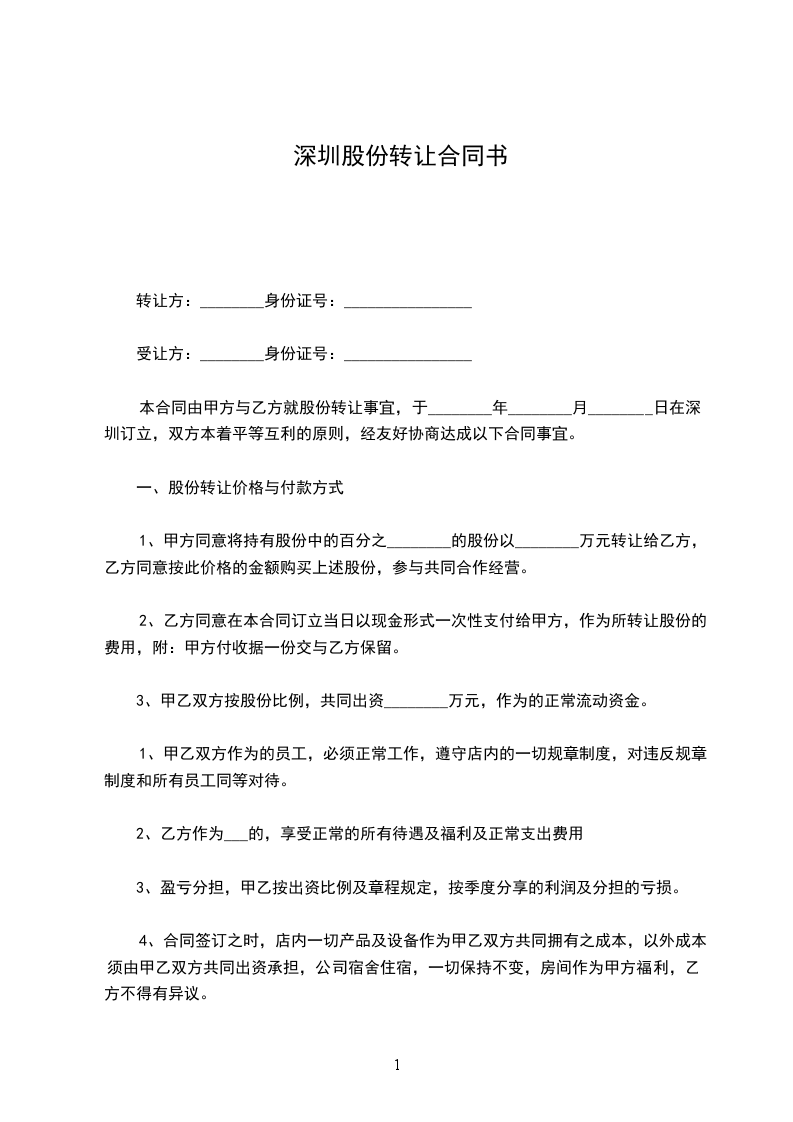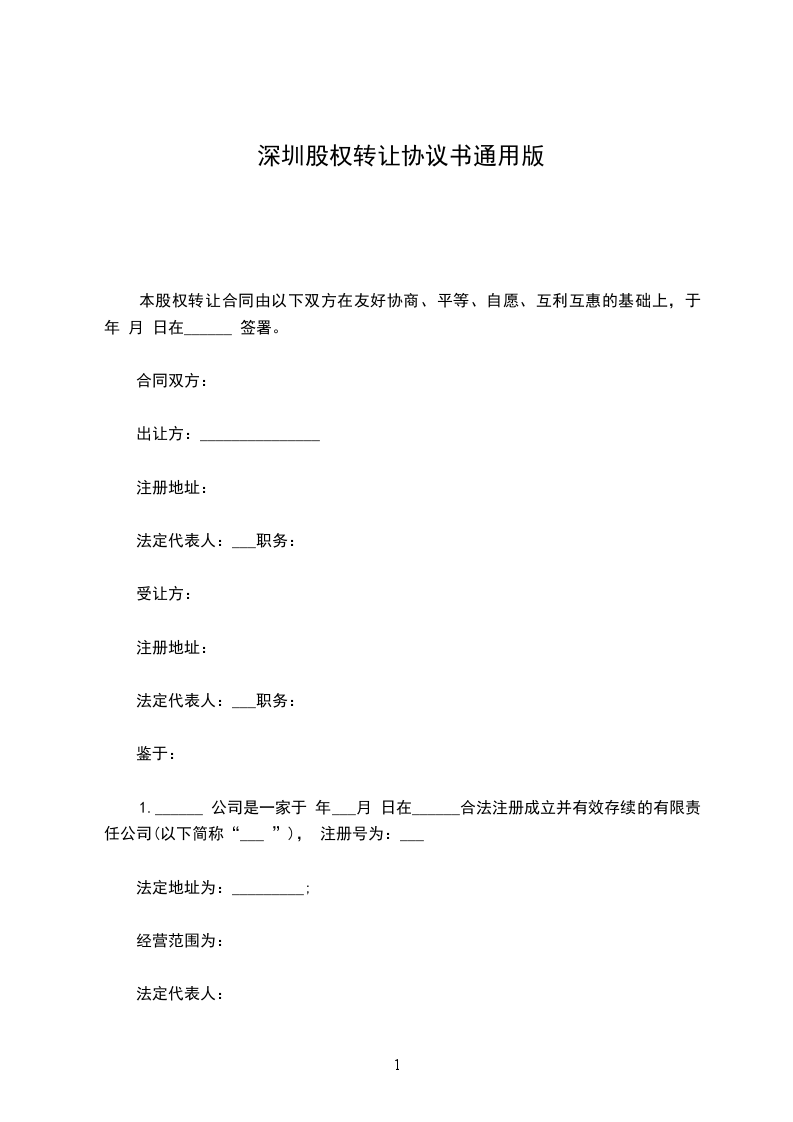 本股权转让合同由以下双方在友好协商、平等、自愿、互利互惠的基础上,于 年 月 日在______ 签署。