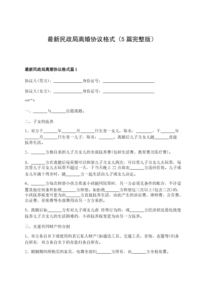 最新民政局离婚协议格式篇5