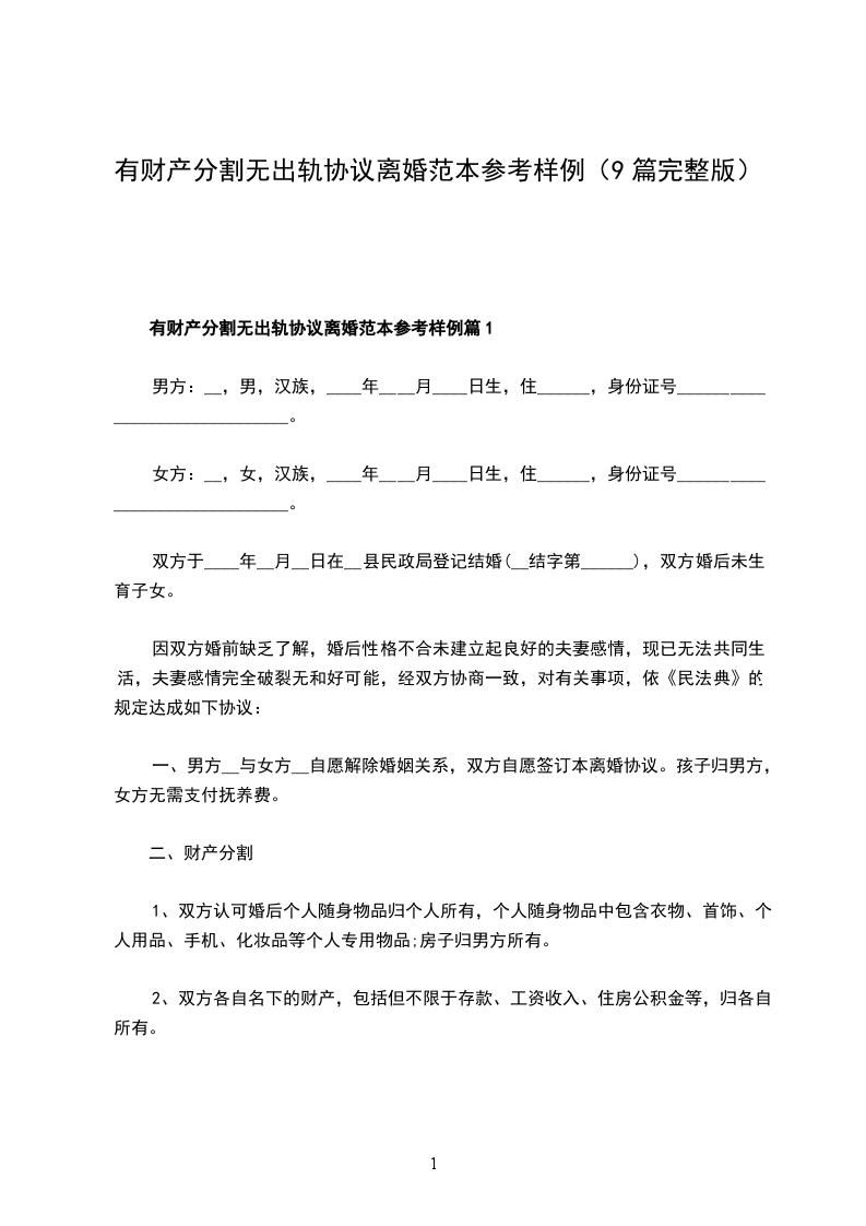 九、本协议一式三份,自婚姻登记处颁发离婚证之日起生效,男、女双方各执一份,婚姻登记机关存档一份。