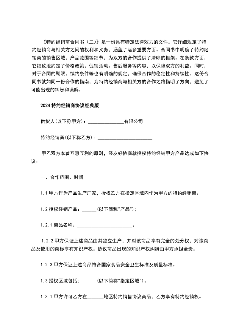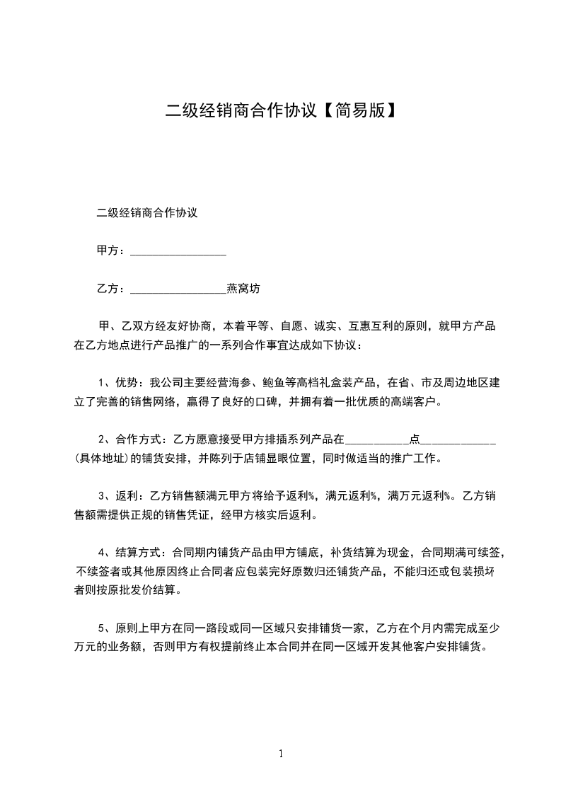 经销商合同是企业选定经销商后与其签订的明确双方权利义务关系的协议。