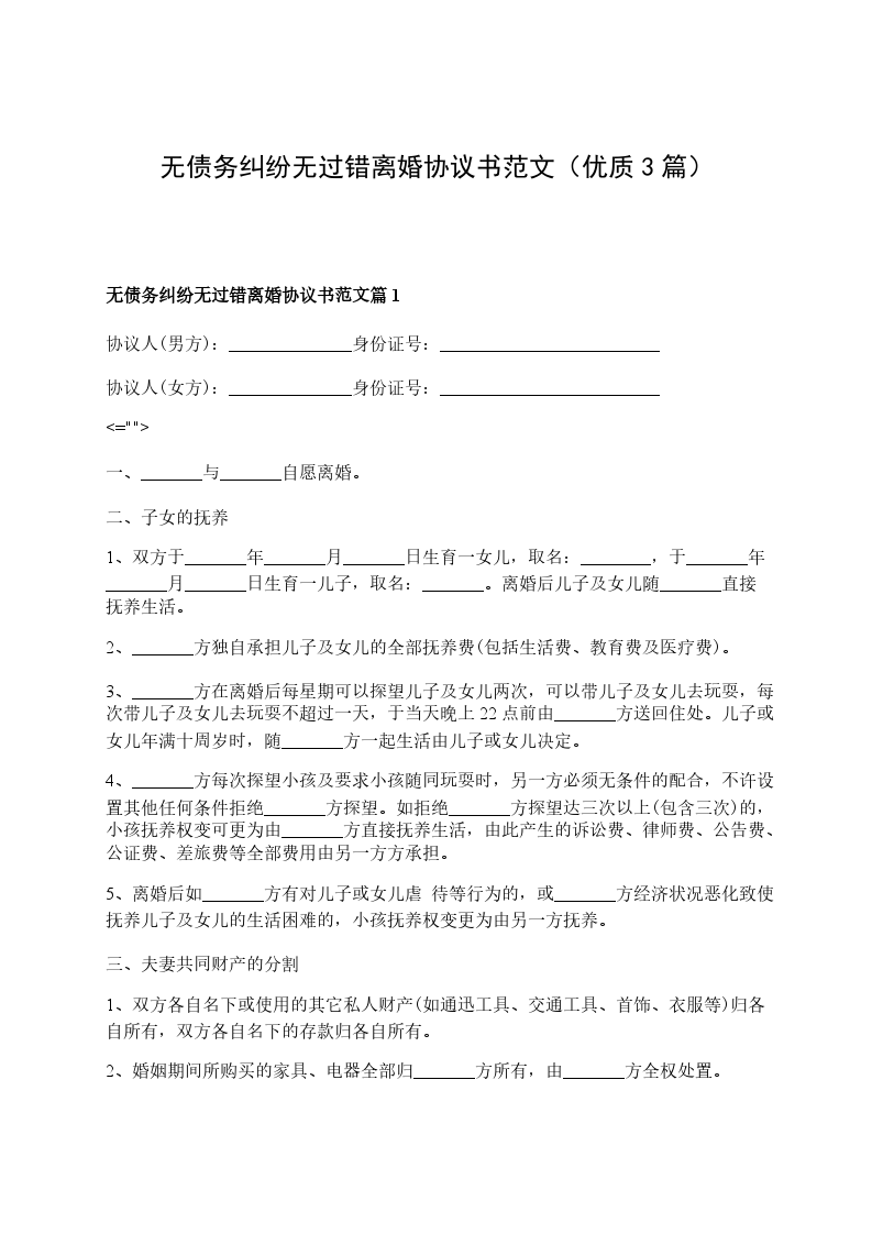 九、本协议一式________份,自婚姻登记处颁发离婚证之日起生效,男、女双方各执________份,婚姻登记机关存档一份。