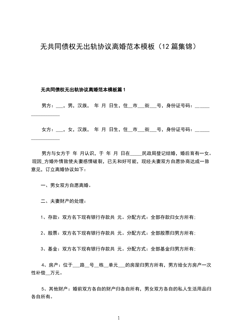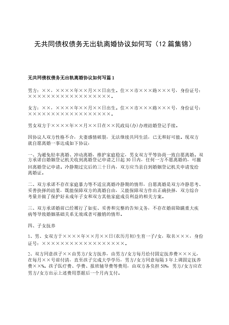 无债权无出轨协议离婚范本样本篇12