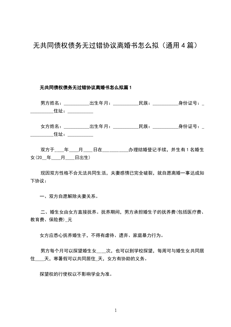 无债务无过错协议离婚范本怎么拟篇4