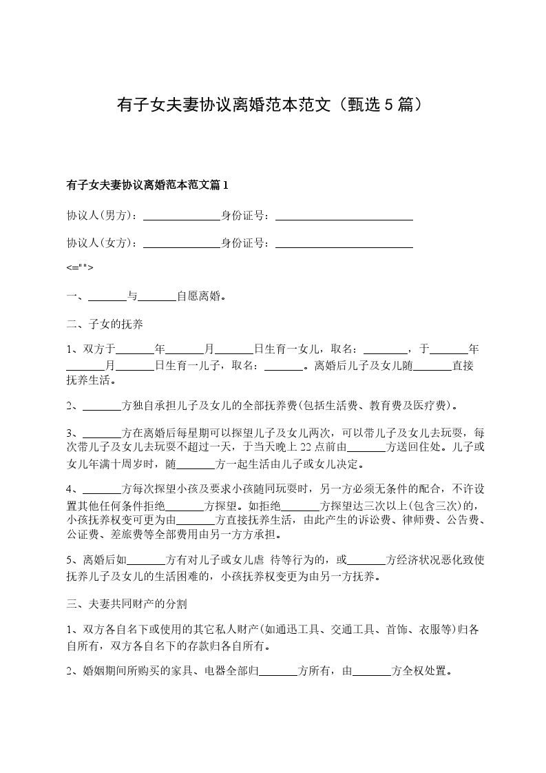 有子女夫妻协议离婚范本范文篇5