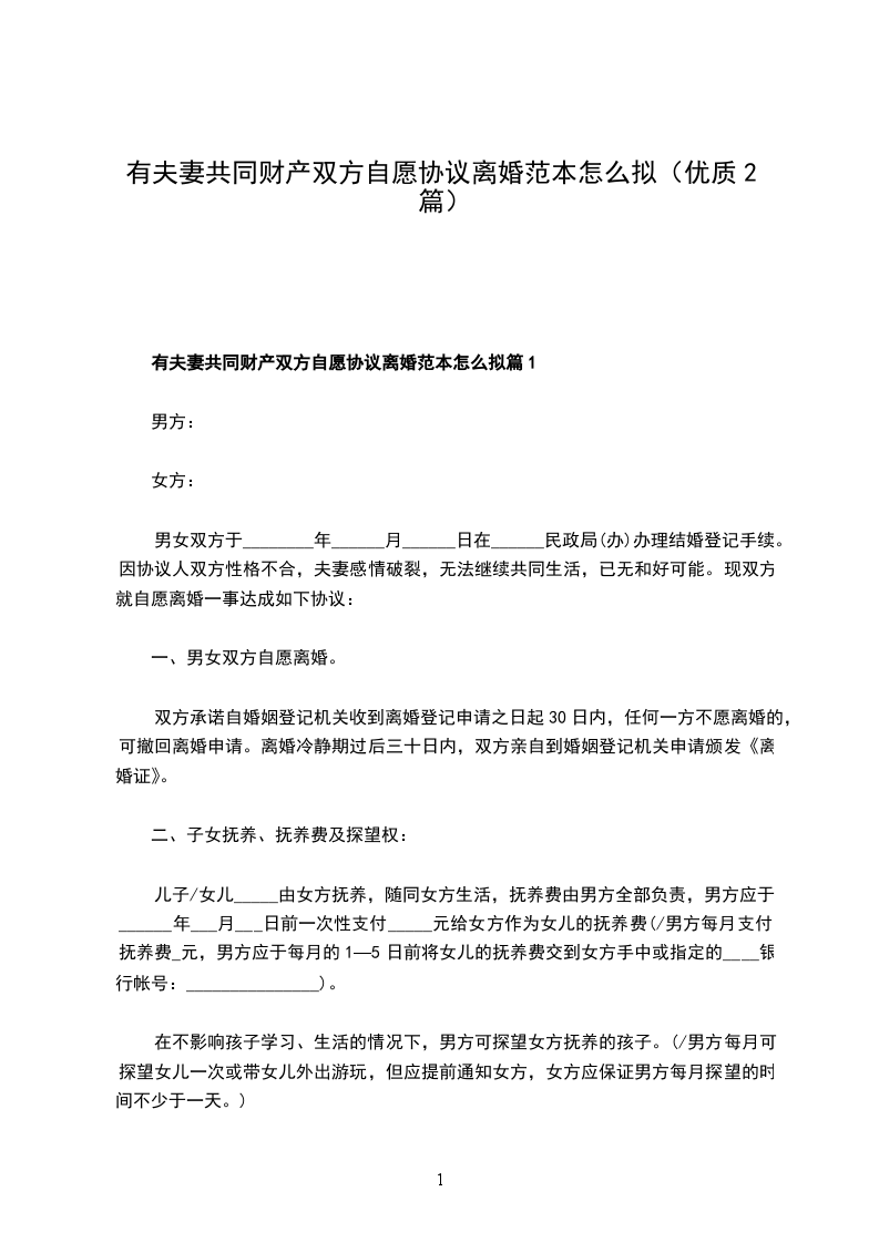 一、男方____与女方____自愿离婚。