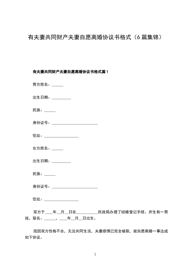 无共同债权夫妻自愿离婚协议怎么写篇6