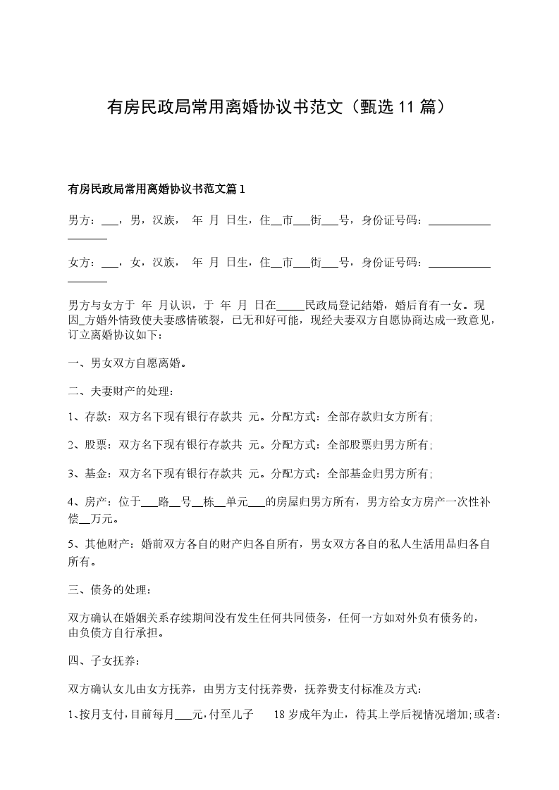 有房民政局常用离婚协议书范文篇11