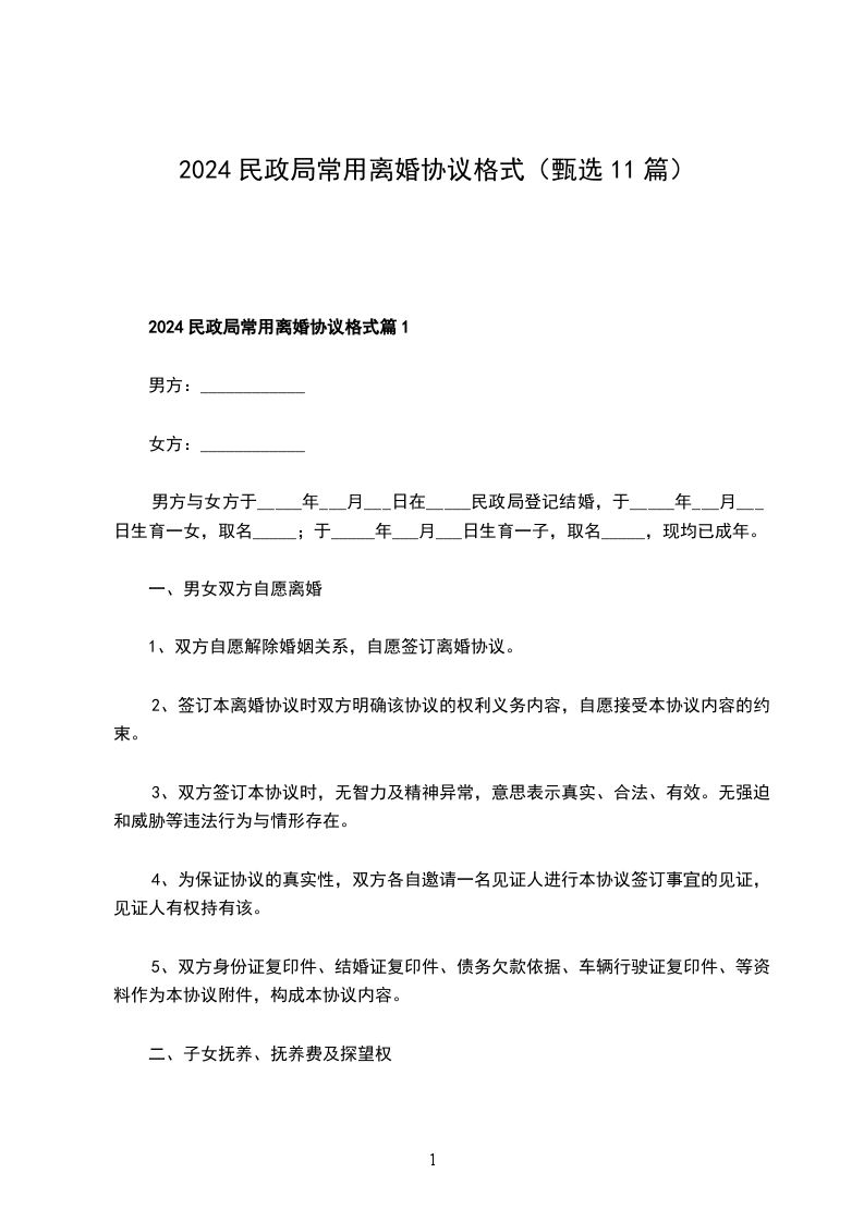 乙方(女方):__________________,女,______年______月______日出生,______族,住______市______路______,身份证号:__________________