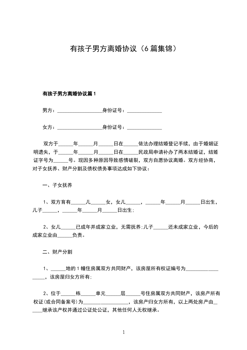 协议人(男方):___________ 身份证号:________________________________