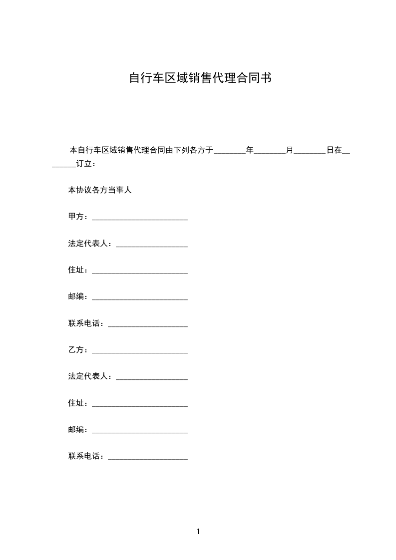 本自行车区域销售代理合同由下列各方于________年________月________日在________订立: