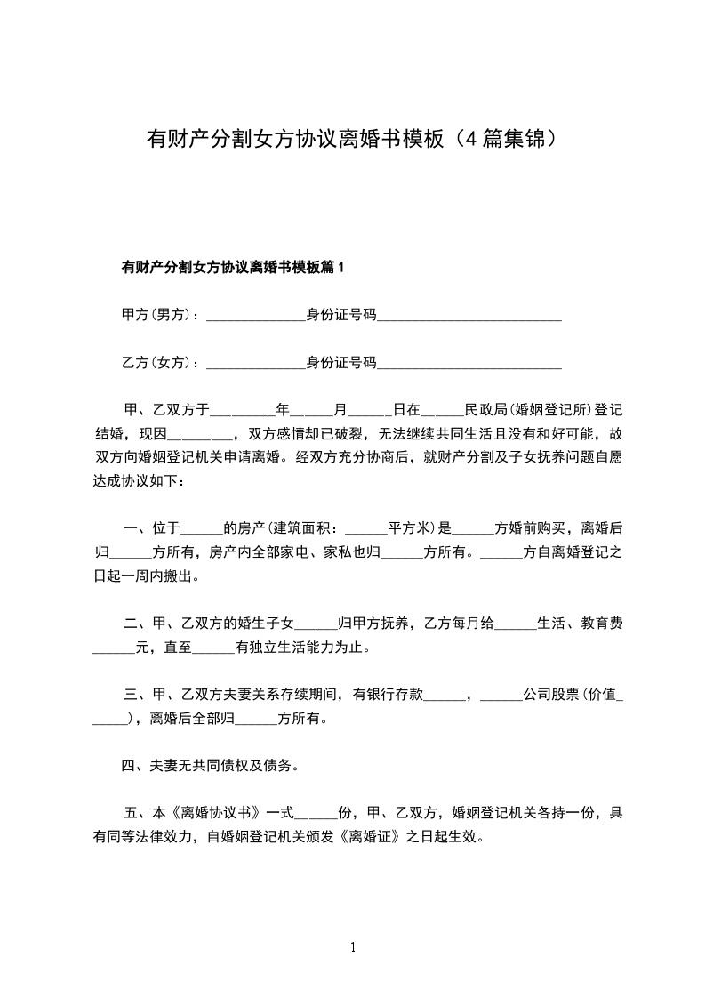 注:本协议一式______份,男女双方各______份,婚姻登记机关_____份。