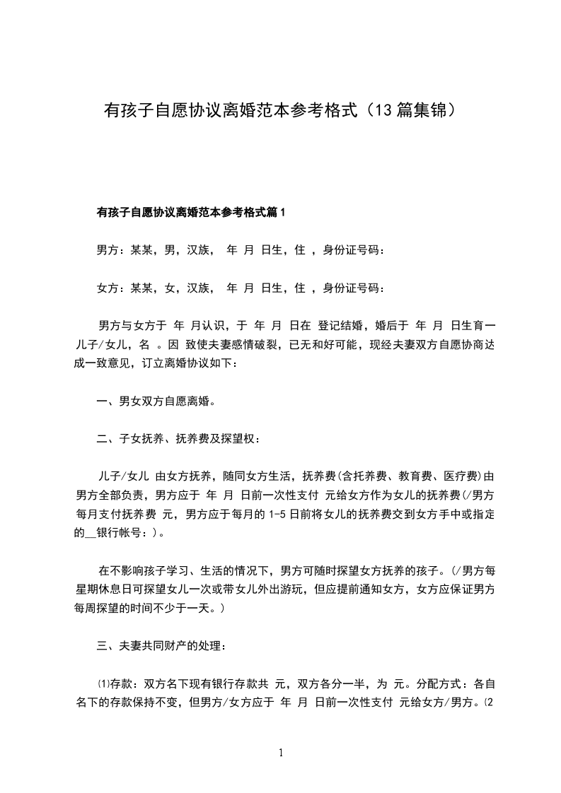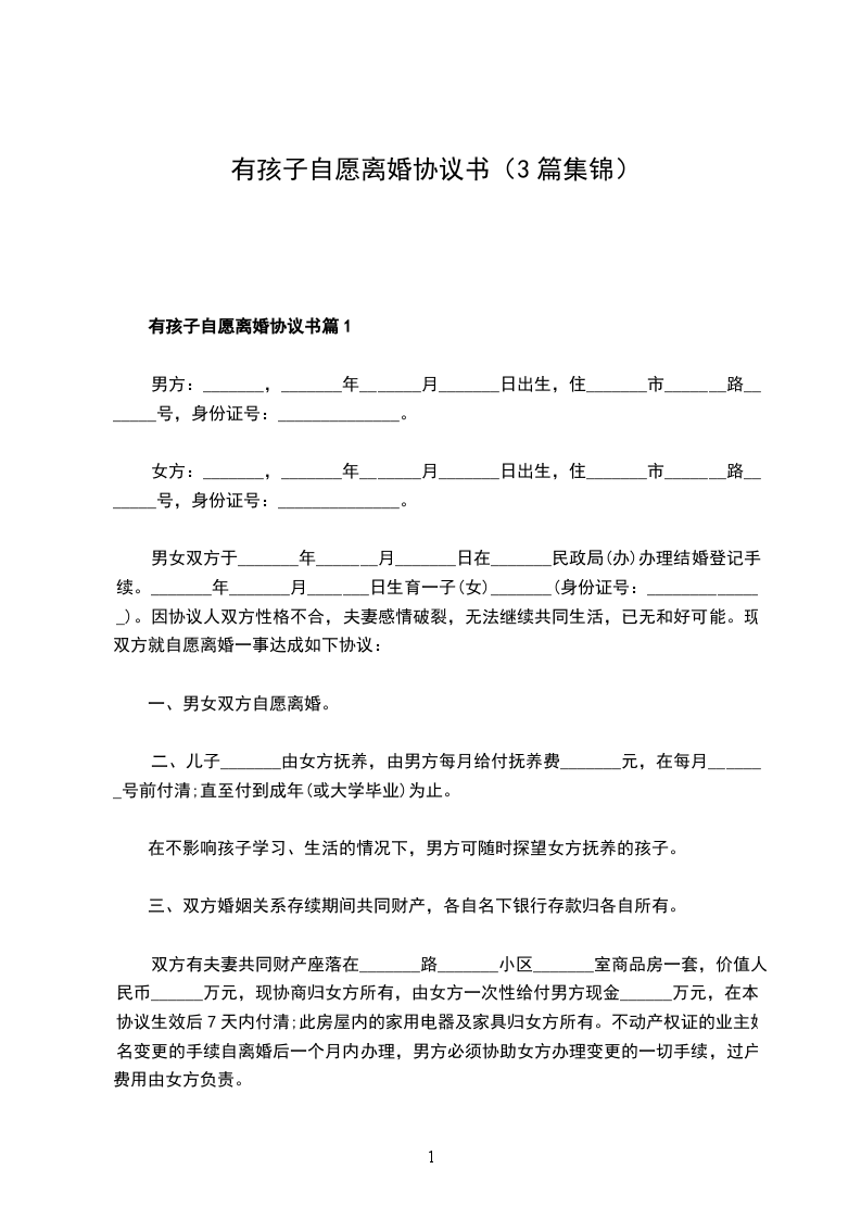 有孩子自愿协议离婚书参考格式篇13