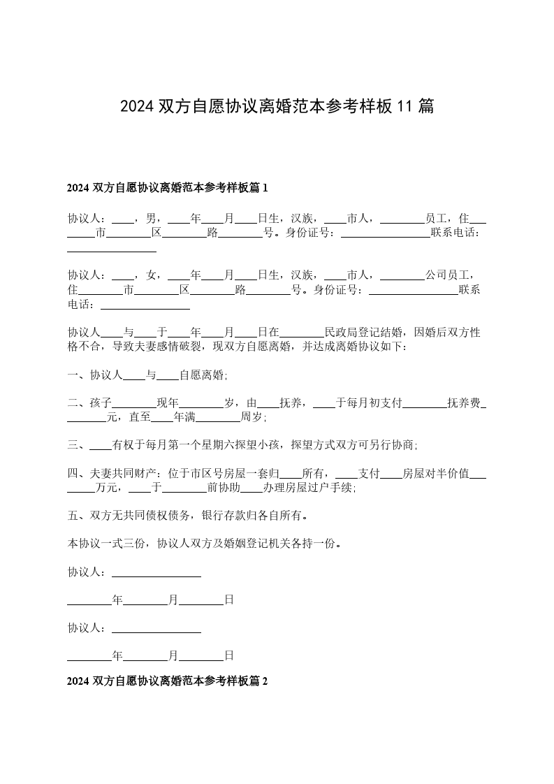协议人_______向双方于_______年_______月_______日在_______民政局办理结婚登记手续,结婚证号为:_____________________。现因感情不和等原因,自愿离婚,经双方协商一致,对有关事项,依我国《民法典》的规定达成如下协议: