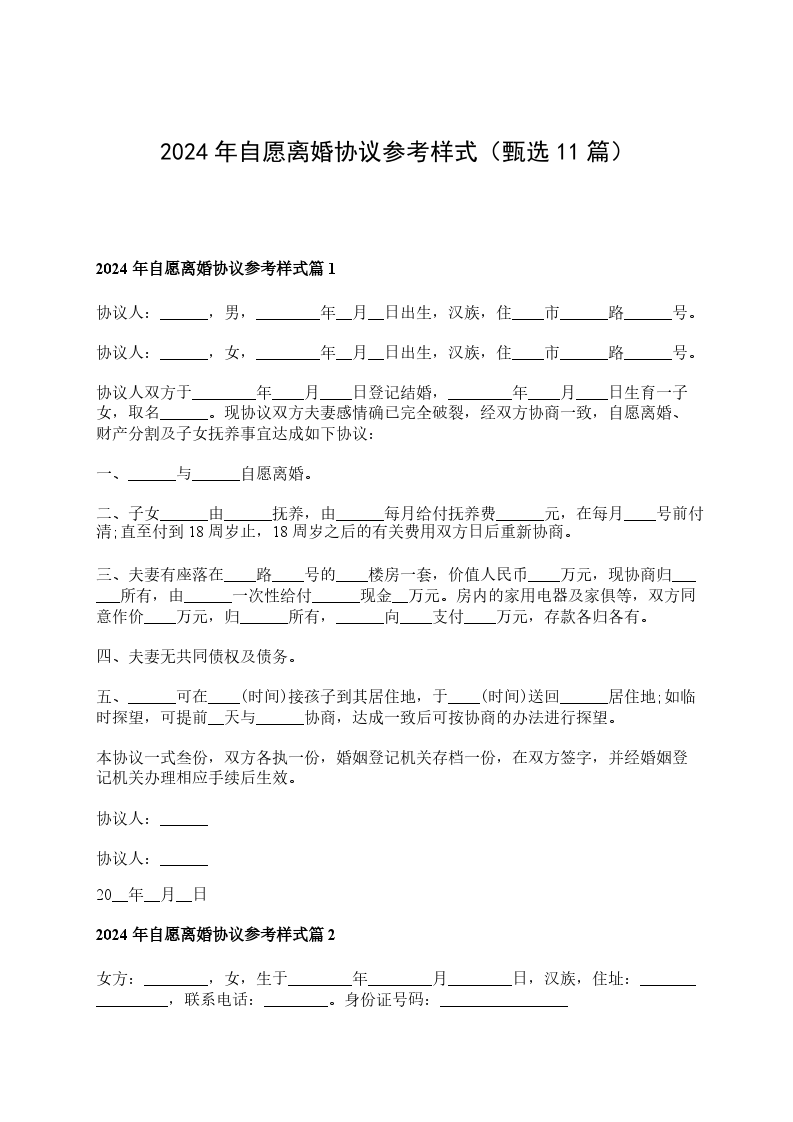 八、本协议一式三份,男、女双方各执一份,婚姻登记机关存档一份。