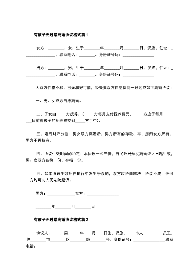 有孩子男方离婚协议格式篇5