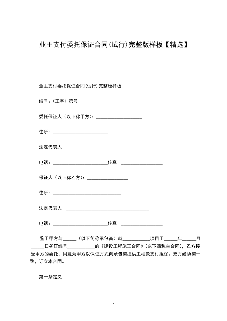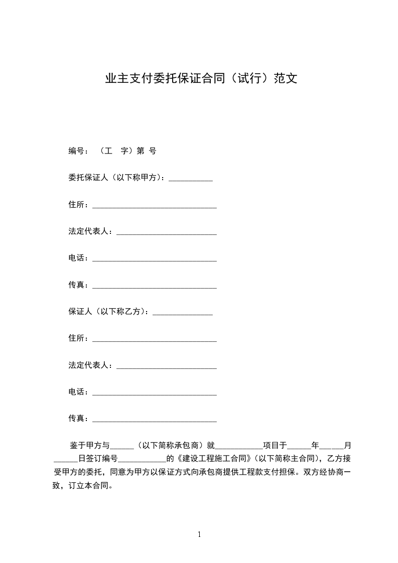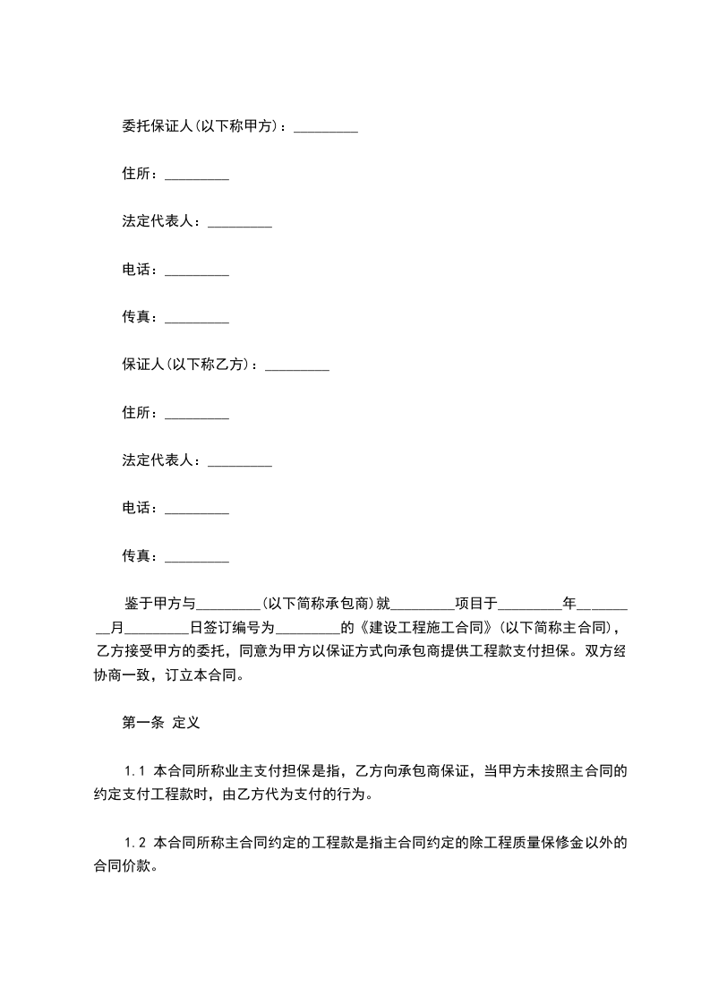 1.1 本合同所称业主支付担保是指,乙方向承包商保证,当甲方未按照主合同的约定支付工程款时,由乙方代为支付的行为。